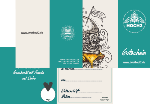 *Wir bieten dir hier die Möglichkeit einen Gutschein online zu erwerben. Die Abbildung jedoch, zeigt die Version, die du bei uns im Hoch2 mit einem tollen Umschlag und als Karte bekommst. Die digitale Version beinhaltet die Möglichkeit den Gutschein auszudrucken oder per Mail zu versenden. Das Layout weicht jedoch von unserer physischen Version ab.